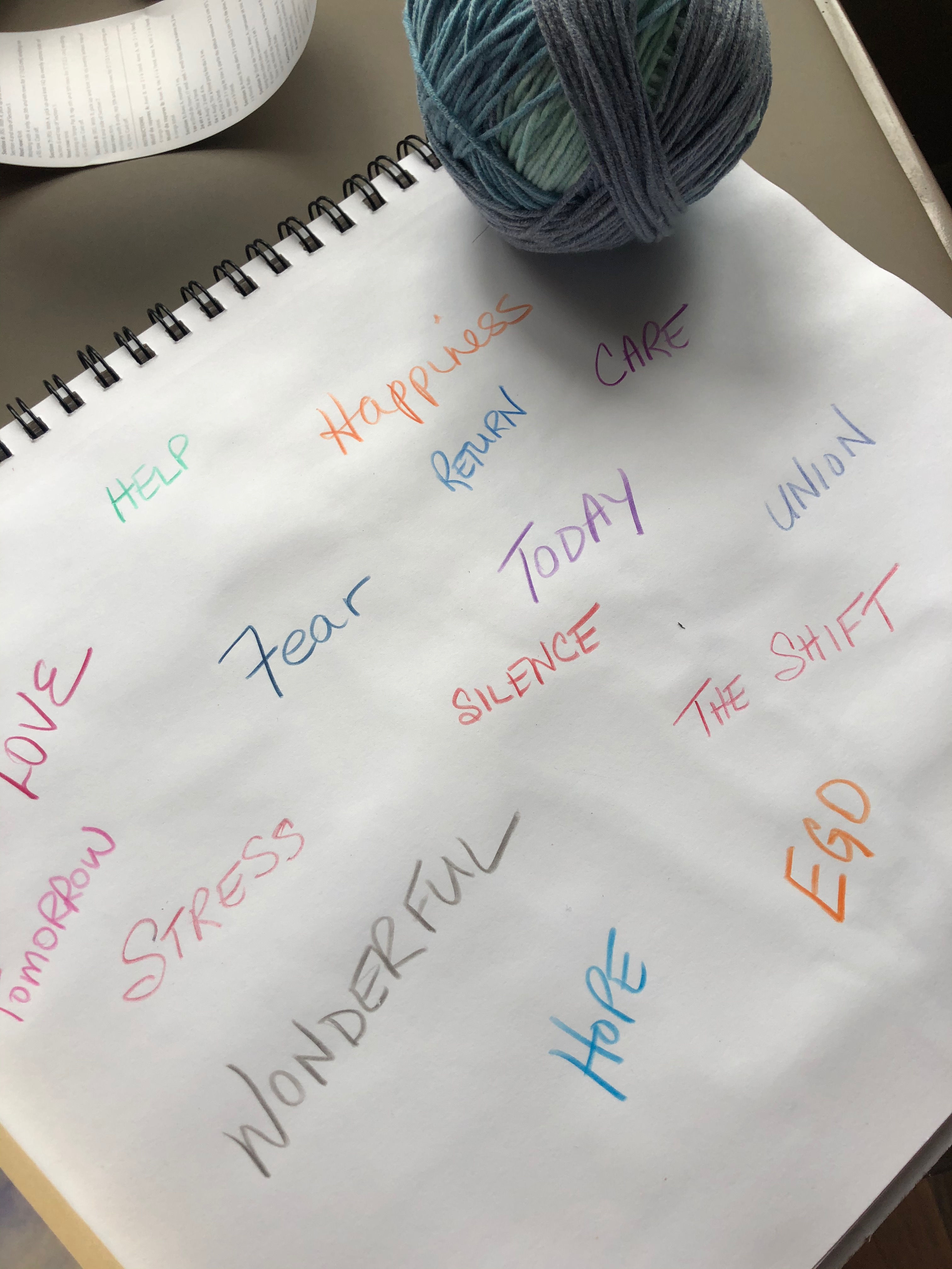 As I was working with the tangled words of my own life in this morning of darkness and distress many words popped up to me. Words like help, alone, stress, silence, and fear. Then as I listened to these words in my thoughts words like love, hope, today, tomorrow, wonderful and the shift replaced them. As I worked through the tangles of those in the story on the screen my own darkness lifted knowing I was not alone, or helpless or silenced. I am in charge of my own happiness and my own life and as I rolled that yarn a renewed strength flowed over me like warm syrup, coating me from the top down in sweetness. All the words were hidden under the tangles of my perceived darkness and when I took the time to look at the tangles it did not seem so dark anymore.